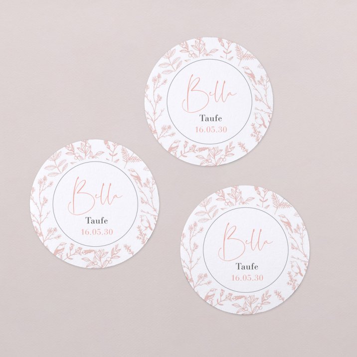 Runden Sie Ihre Papeterie und Deko mit den passenden Aufklebern ab. Mit dem Namen des Taufkindes und einer persönlichen Notiz gestaltet, können Sie mit den großen runden Aufklebern die verschiedensten Artikel schmücken: Briefumschläge, Geschenke, Marmeladengläser, Kerzen, und vieles mehr...!
