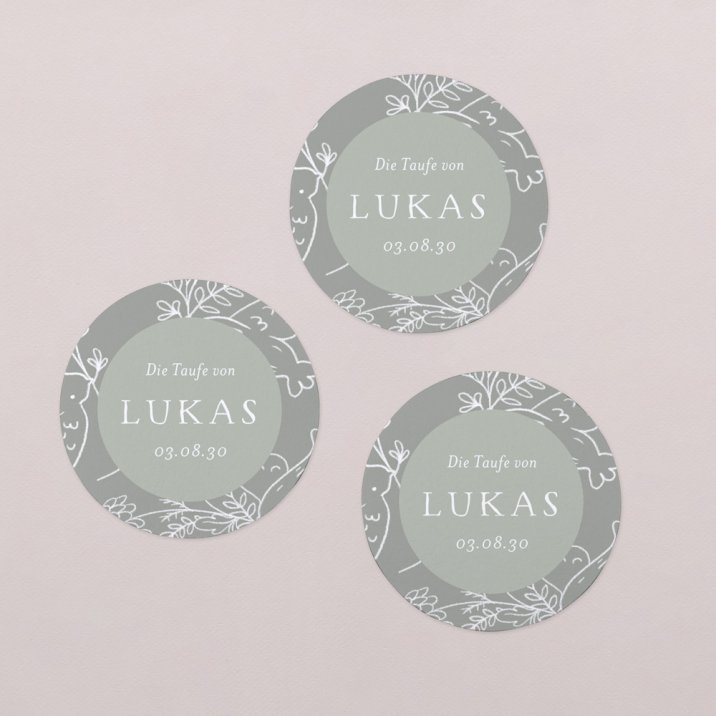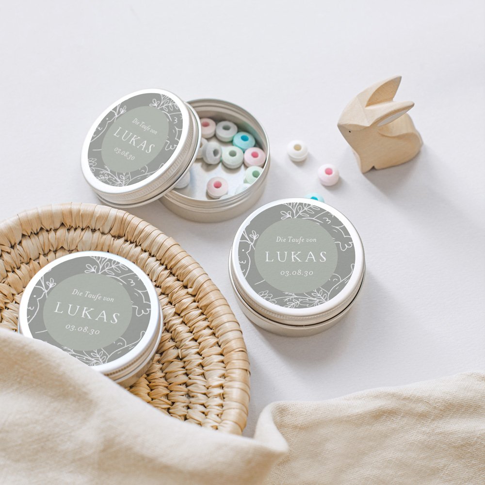 Runden Sie Ihre Papeterie und Deko mit den passenden Aufklebern ab. Mit dem Namen des Taufkindes und einer persönlichen Notiz gestaltet, können Sie mit den großen runden Aufklebern die verschiedensten Artikel schmücken: Briefumschläge, Geschenke, Marmeladengläser, Kerzen, und vieles mehr...!