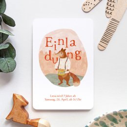 Ein kleiner Fuchs kündigt auf der Geburtstagseinladung Musikant die bevorstehende Geburtstagsparty Ihres Kindes an. Das Motiv wurde mit Liebe von unseren Designern illustriert und wird die kleinen und großen Freunde des Geburtstagskindes sicher begeistern.