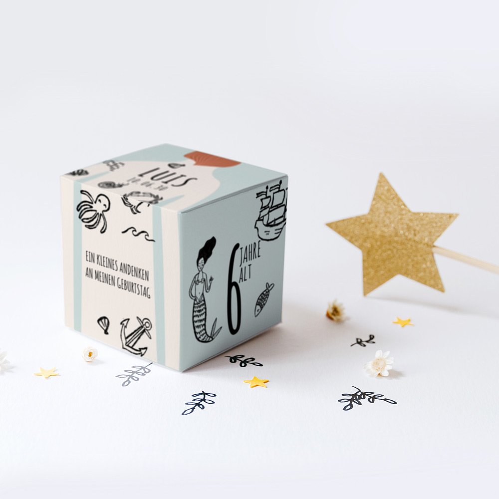Süßigkeiten, Kekse, Gummibärchen oder kleine Spielzeuge ? Lassen Sie Ihrer Phantasie freien Lauf und füllen Sie die Geschenkbox mit einer kleinen Überraschung für Ihre Geburtstagsgäste. Die Box kann mit dem Namen Ihres Kindes und anderen Informationen (Datum, Alter, usw.) sowie einer kleinen Nachricht personalisiert werden.