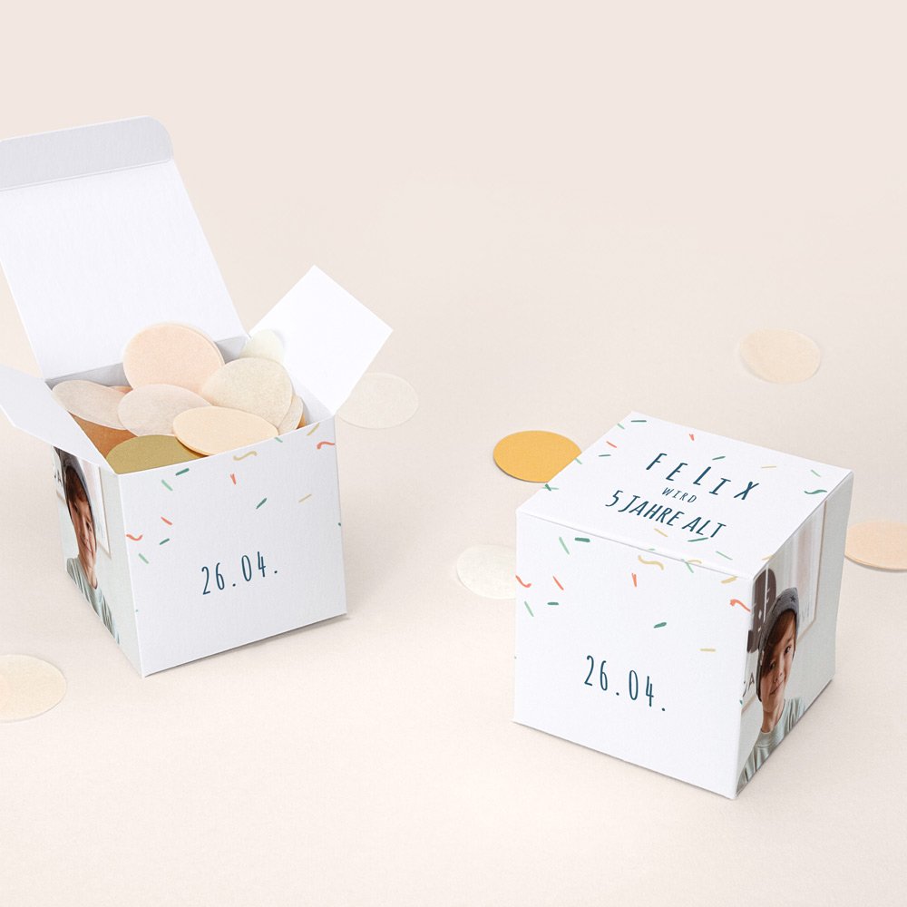 Süßigkeiten, Kekse, Gummibärchen oder kleine Spielzeuge ? Lassen Sie Ihrer Phantasie freien Lauf und füllen Sie die Geschenkbox mit einer kleinen Überraschung für Ihre Geburtstagsgäste. Die Box kann mit dem Namen Ihres Kindes und anderen Informationen (Datum, Alter, usw.) sowie einer kleinen Nachricht personalisiert werden.