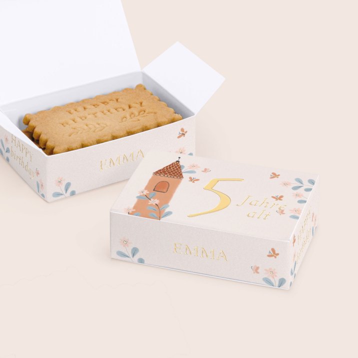 Überraschen Sie die Geburtstagsgäste als kleines Dankeschön mit ein paar selbst gebackenen Keksen in einer schönen Keksbox! Personalisieren Sie die Keksbox mit dem Namen Ihres Kindes, dem Geburtstag, Datum und ein paar Dankesworten. Die lecker gefüllte Keksbox ist ein schönes Andenken, dass die Geburtstagsgäste sicher gerne mit nach Hause nehmen.