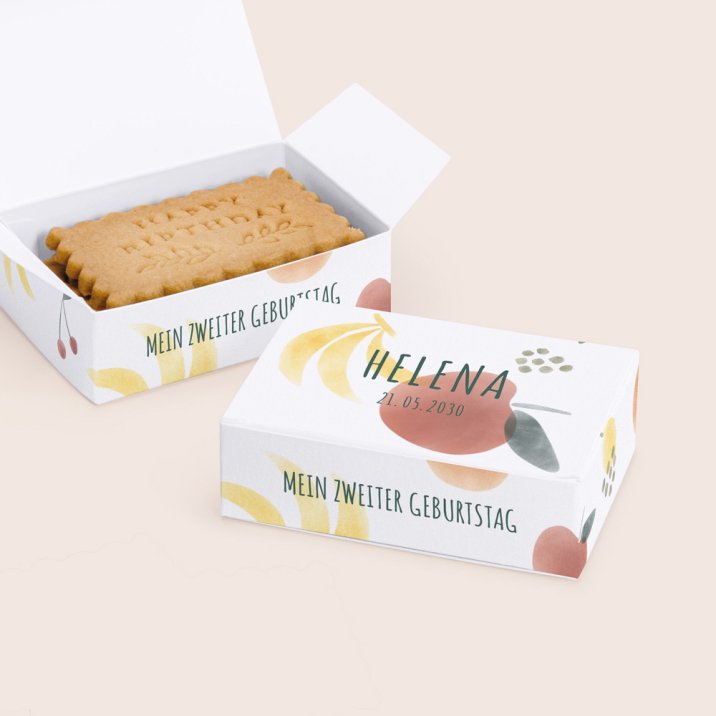 Familie und Freunde haben den Geburtstag Ihres Kindes mit Ihnen gefeiert? Dann danke Sie Ihren Liebsten mit der hübschen Keksbox Tutti frutti, die Sie mit selbstgebackenen Keksen oder anderen kleinen Geschenken füllen können.