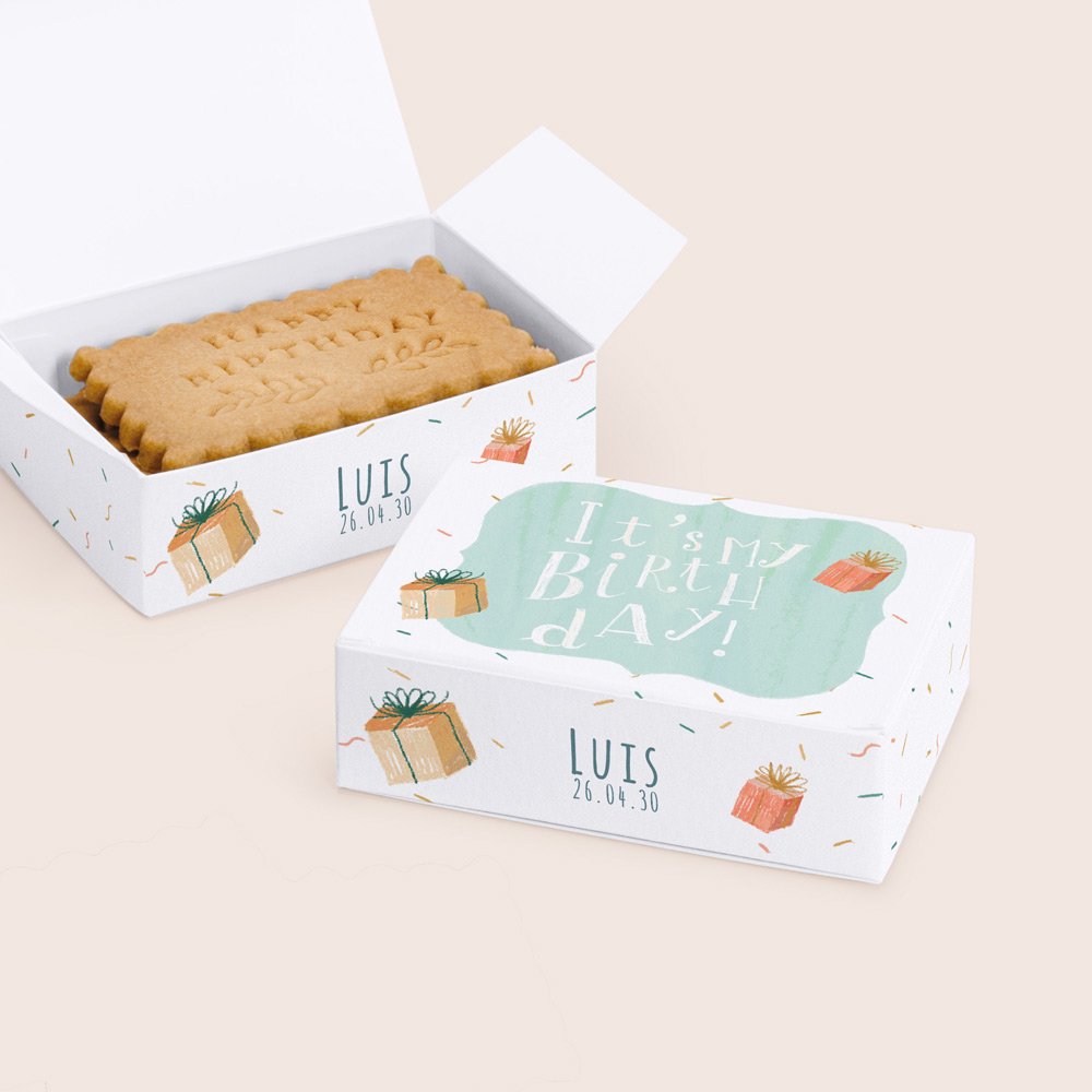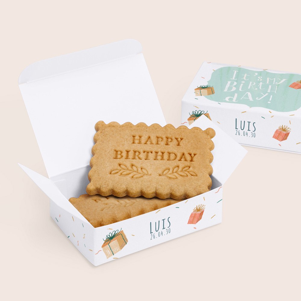Überraschen Sie die Geburtstagsgäste als kleines Dankeschön mit ein paar selbst gebackenen Keksen in einer schönen Keksbox! Personalisieren Sie die Keksbox mit dem Namen Ihres Kindes, dem Geburtstag, Datum und ein paar Dankesworten. Die lecker gefüllte Keksbox ist ein schönes Andenken, dass die Geburtstagsgäste sicher gerne mit nach Hause nehmen.