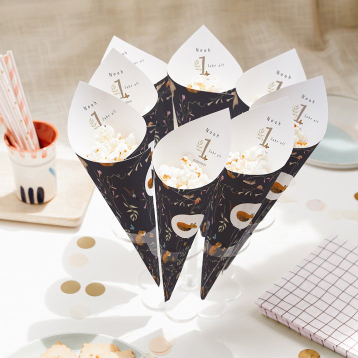 Versüßen Sie die Geburtstagsfeier Ihres Kindes mit der Spitztüte Sidonie, gefüllt mit Süßigkeiten oder anderen kleinen Naschereien.