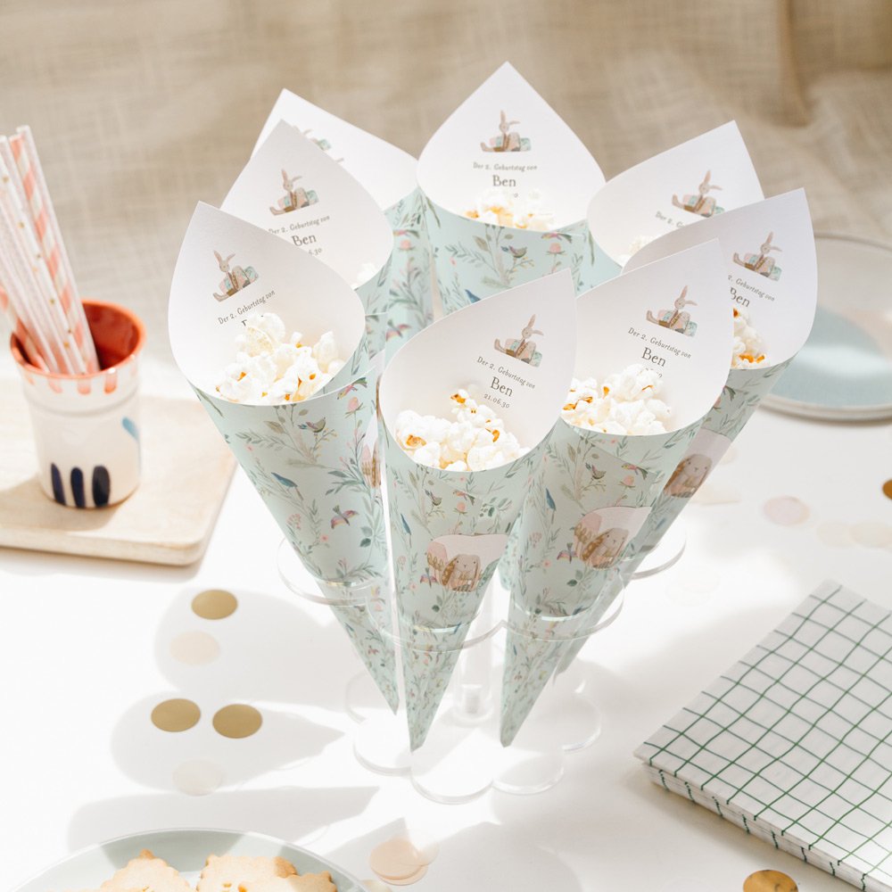 Versüßen Sie die Geburtstagsfeier Ihres Kindes mit der Spitztüte Verdi, gefüllt mit Süßigkeiten oder anderen kleinen Naschereien.