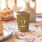 Diese recycelbaren Becher werden mit selbstklebenden Etiketten geliefert, die mit dem Namen Ihres Kindes, dem Geburtstag sowie dem Datum der Feier personalisierbar sind.