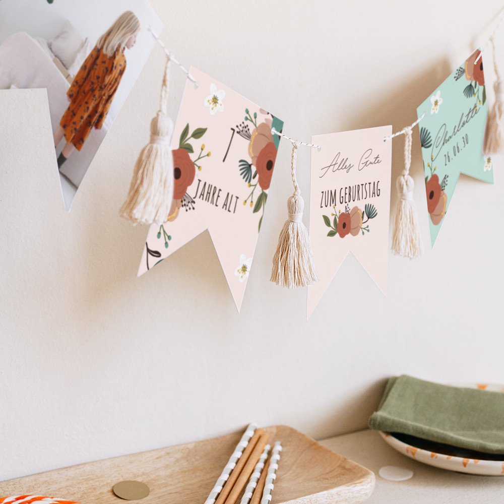 Zaubern Sie gute Stimmung zum Geburtstag Ihres Kindes, indem Sie den Ort der Feier mit der süßen Girlande Bloom dekorieren.