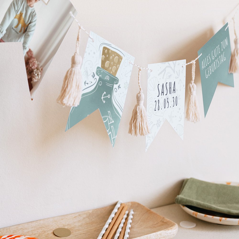 Zaubern Sie gute Stimmung zum Geburtstag Ihres Kindes, indem Sie den Ort der Feier mit der süßen Girlande Flaschenpost dekorieren.