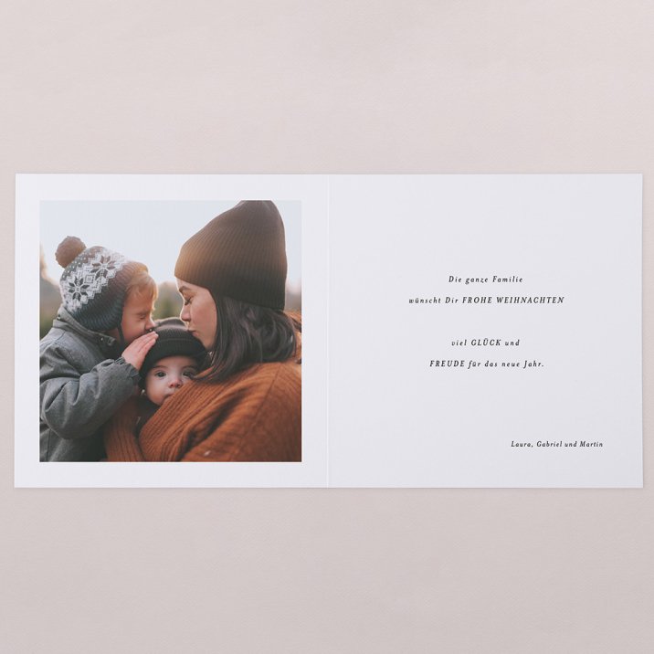 Quadratische Grußkarte, mittig gefaltet. Alle vier Seiten lassen sich gestalten. Entdecken Sie auch die passenden Umschlag-Einlagen und Aufkleber!