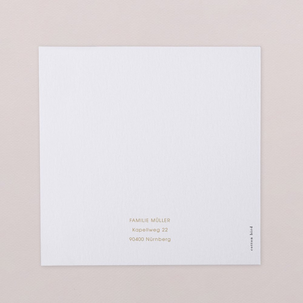 Quadratische Grußkarte, mittig gefaltet. Alle vier Seiten lassen sich gestalten. Entdecken Sie auch die passenden Umschlag-Einlagen und Aufkleber!