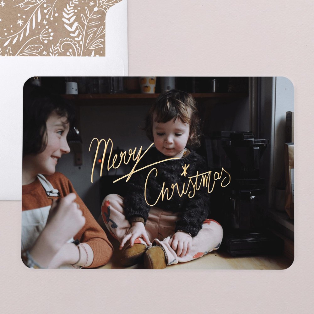 Veredeln Sie Ihre schönsten Erinnerungen mit der Grußkarte Gold letters. Das schlichte Design hebt Ihr Lieblingsfoto hervor und schafft eine perfekte Kulisse, um Ihre besten Wünsche zum Jahresende zu übermitteln.