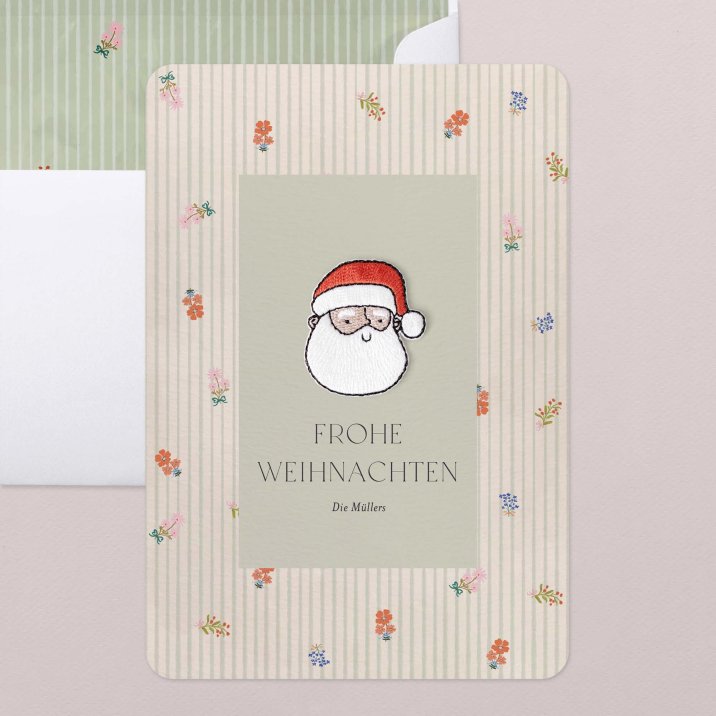 Bringen Sie noch mehr Magie in die Feiertage mit einer Grußkarte, die mit einem bestickten Aufkleber verziert ist. Diese einzigartige Kreation, von unserem Atelier entworfen, wird Ihre Weihnachts- und Neujahrswünsche mit unendlicher Sanftheit übermitteln. Wählen Sie zwischen dem ikonischen Weihnachtsmann oder einem festlichen Hasen – zwei bezaubernde, bestickte Boten – um Ihre Lieblingskarte zu personalisieren. Die Grußkarte Madeleine, verziert mit poetischen, bunten Blumen, wird Ihre Weihnachts- und Neujahrswünsche mit viel Zärtlichkeit überbringen.