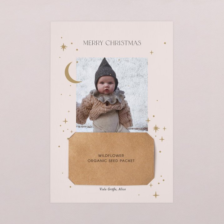 Mit dieser innovativen Grußkarte versenden Sie nicht nur Ihre Festtagsgrüße sondern auch ein kleines Tütchen Bio-Wildblumensamen als Geschenk.