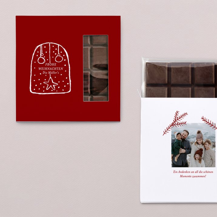 Unsere Schokoladentafeln sind eine perfekte Aufmerksamkeit für die Feiertage, die garantiert für Freude unterm Weihnachtsbaum sorgen.