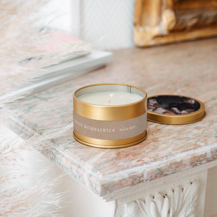 Unsere goldenen Kerzen werden in Frankreich hergestellt und sind in eine elegante goldene Metalldose gegossen, die Sie individuell gestalten können. Sie werden in einem hübschen Baumwollsäckchen geliefert und enthalten zwei Klebeetiketten pro Kerze, die Sie selbst gestalten und aufkleben können.