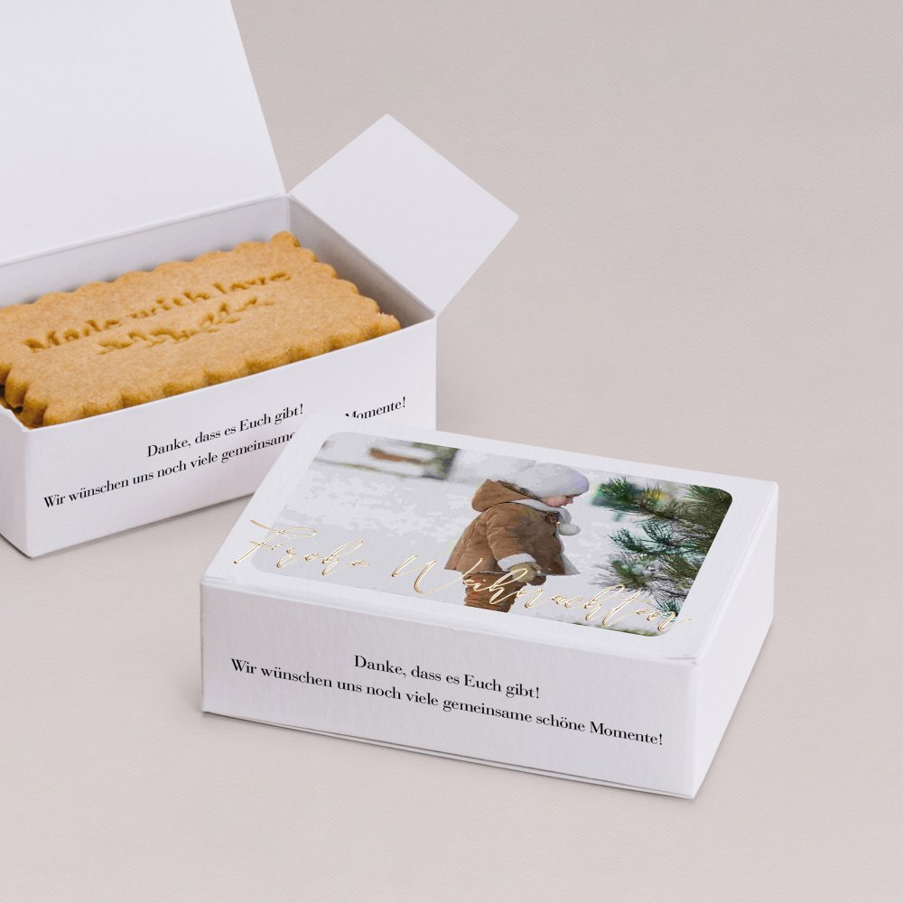 Personalisierbare Keksbox, die Sie mit Ihren Lieblingskeksen, Weihnachtsplätzchen oder anderen kleinen Leckereien füllen können. Die auf den Bildern abgebildeten Keksen sind nicht im Lieferumfang enthalten.