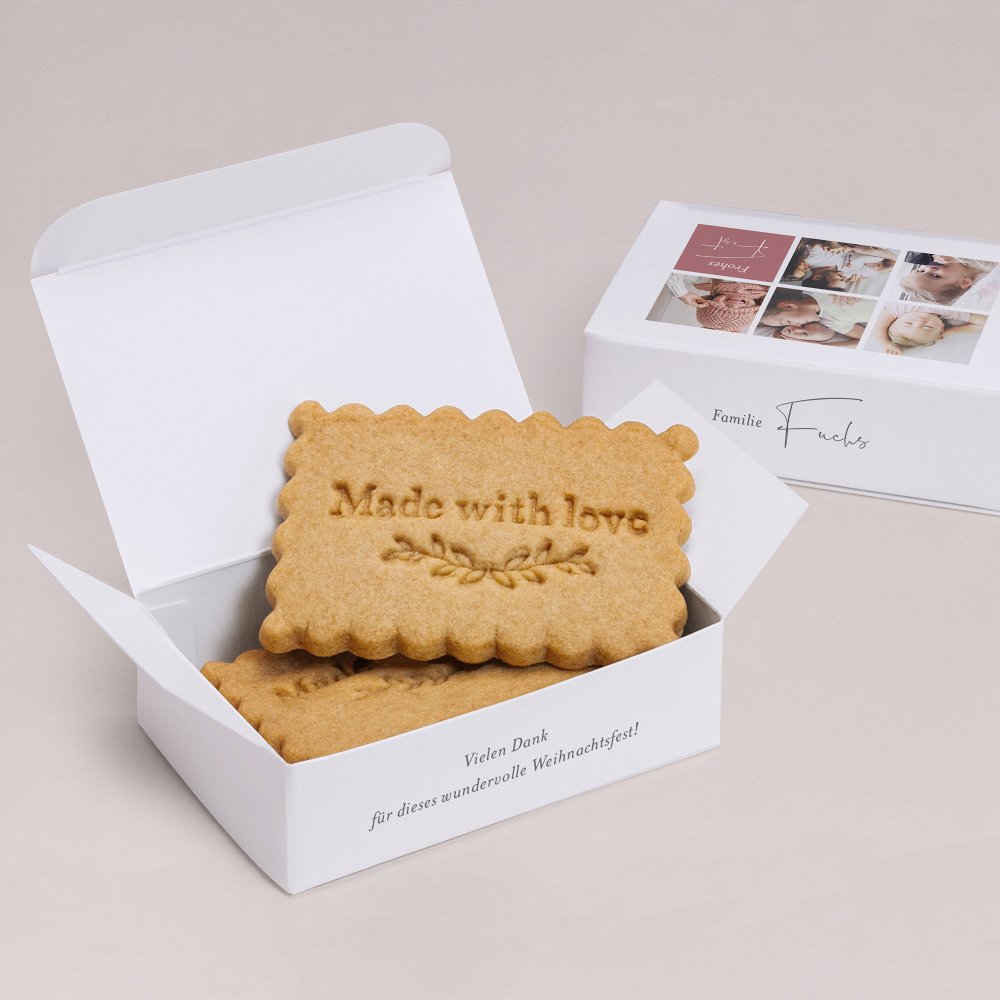 Personalisierbare Keksbox, die Sie mit Ihren Lieblingskeksen, Weihnachtsplätzchen oder anderen kleinen Leckereien füllen können. Die auf den Bildern abgebildeten Keksen sind nicht im Lieferumfang enthalten.